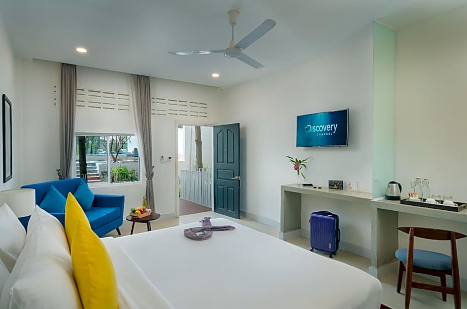 This family room offers a pool with a view. The spacious family room provides air conditioning, a private entrance, a terrace with garden views as well as a private bathroom featuring a shower. The unit offers 2 beds.